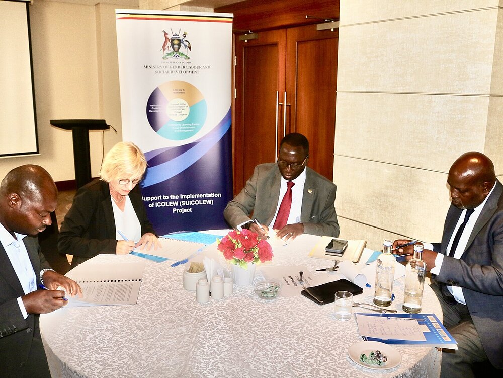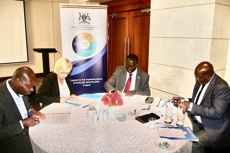 The signing ceremony, held at the Sheraton Hotel in Kampala, was attended by top officials from MGLSD and DVV International, including the Permanent Secretary, MGLSD, and the Regional Director, DVV International East/Horn of Africa.